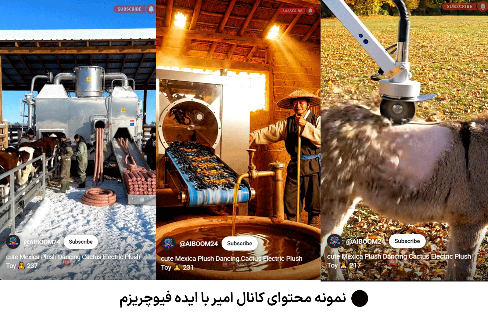 - ایده بکر: او محتوایی در مورد مزارع مدرن، دستگاههای پیشرفته و کارهای عجیبی که توسط ماشینآلات مدرن انجام میشود تولید میکند.